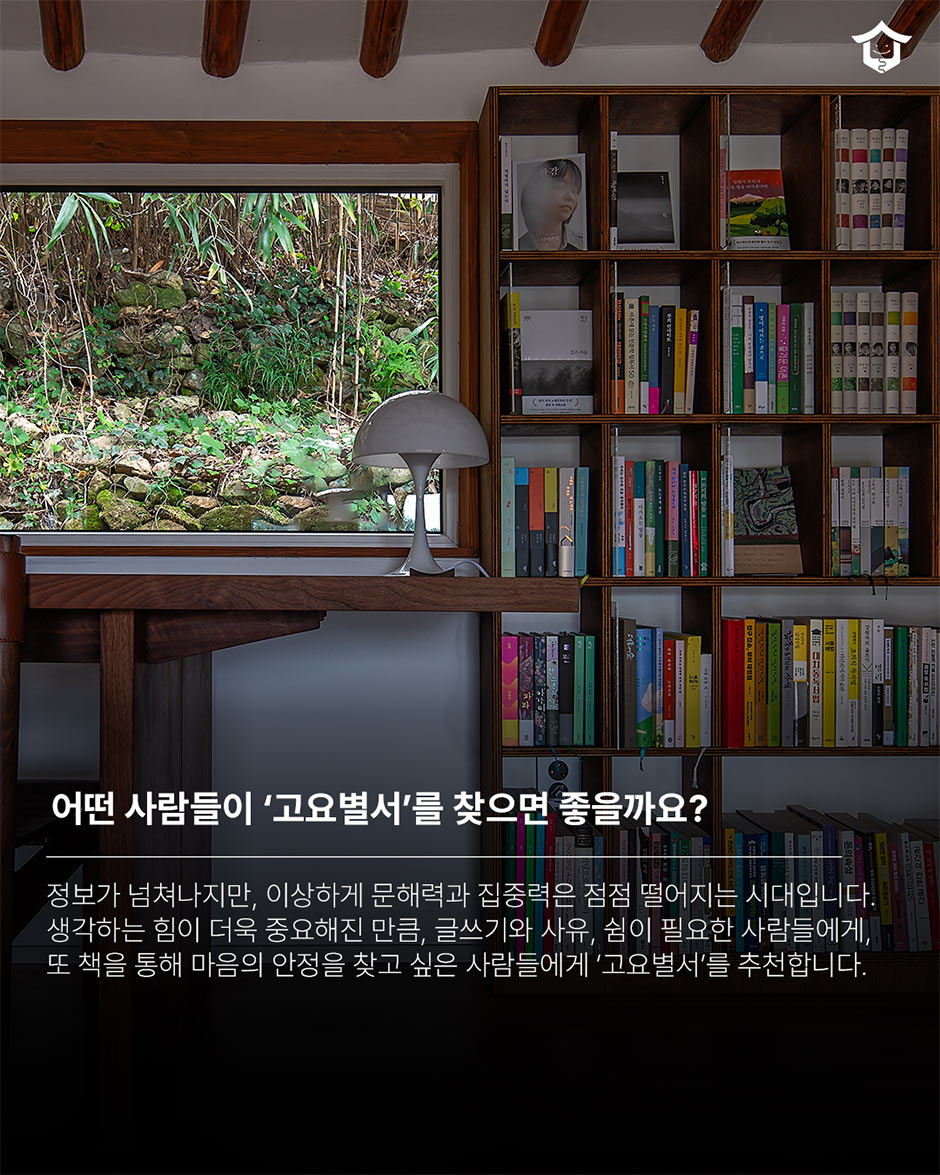 분주했던 일상 속에서 나만의 고요를 찾는 가장 이상적인 방법. 책이 머물고, 마음이 쉬어가는 곳을 소개할게요.